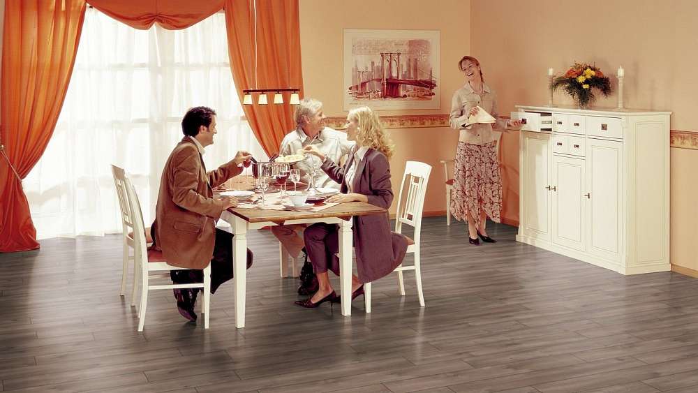 Это полностью готовое покрытие. Оно не требует финишной отделки – верхний слой с "Однополосный" рисунком прекрасно вписывается в любое оформление комнаты и хорошо смотрится со всеми настенными и потолочными материалами. Толщина доски составляет 8мм, что позволяет сделать пол прочным, устойчивым к прогибу. Ламинированная панель выдерживает большой вес мебели, на ней не остается следов от ножек и царапин. Материал хорошо держит тепло внутри помещения, не пропускает внутрь холод.